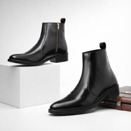 Black Zipper Ankle Boots for Men