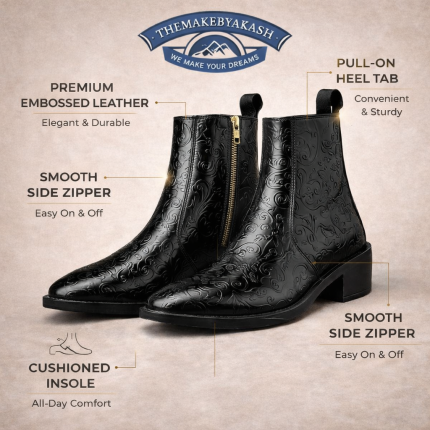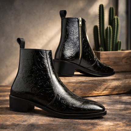 Elegant Embossed Leather Zipper Ankle Boots