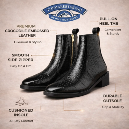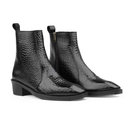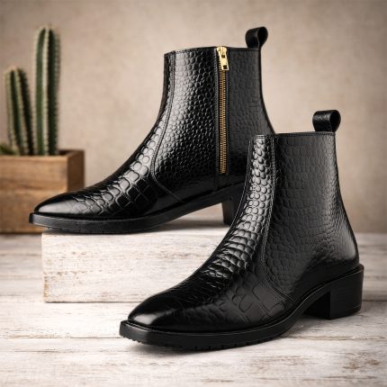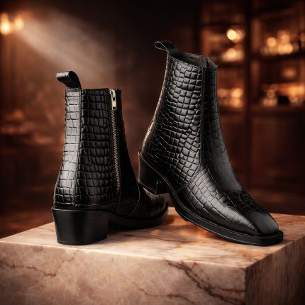 Luxury Crocodile-Embossed Leather Ankle Boots